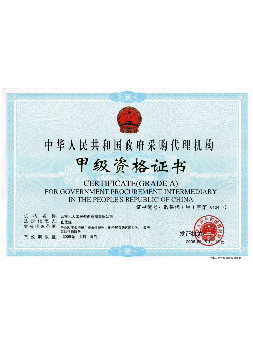 公司是云南省招標(biāo)投標(biāo)行業(yè)協(xié)會會長單位,現(xiàn)為云南省住建廳信用評級招標(biāo)代理機(jī)構(gòu)AAA級單位。公司先后榮獲住建部頒發(fā)的“工程招標(biāo)代理機(jī)構(gòu)甲級資質(zhì)證書”、財(cái)政部頒發(fā)的“政府采購代理機(jī)構(gòu)甲級資格證書”,并在財(cái)政部及中國政府采購網(wǎng)“政府采購代理機(jī)構(gòu)名單”登記備案、獲得國家發(fā)展改革委頒發(fā)的“中央投資項(xiàng)目招標(biāo)代理機(jī)構(gòu)甲級資格證書”、商務(wù)部頒發(fā)的“國際招標(biāo)機(jī)構(gòu)預(yù)乙級資格證書”、機(jī)電產(chǎn)品國際招標(biāo)電子交易平臺頒發(fā)的“機(jī)電產(chǎn)品國際招標(biāo)電子交易證書”、國家國防科技工業(yè)局頒發(fā)的“軍工涉密業(yè)務(wù)咨詢服務(wù)安全保密條件備案證書”。公司已通過ISO9001:2015質(zhì)量管理體系認(rèn)證、ISO14001:2015環(huán)境管理體系認(rèn)證、ISO45001:2018職業(yè)健康安全管理體系認(rèn)證。納稅信用評價已連續(xù)三年被評為A級......
